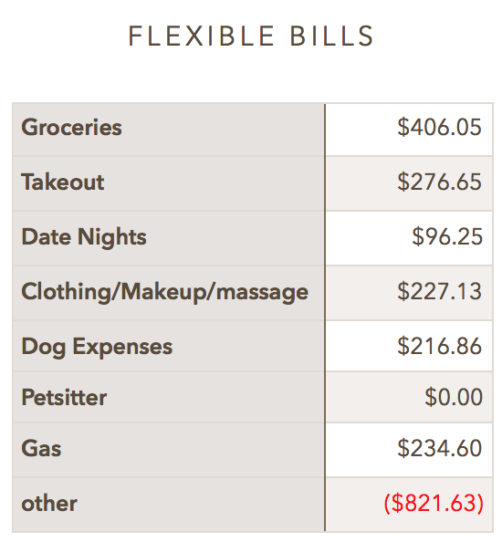 What this actually means is that we gained $821.63 in the "other" category this month. How did we do that? It's basically our tax refund. We applied this to our credit card, so it was basically a wash, as you'll see in the next segment.