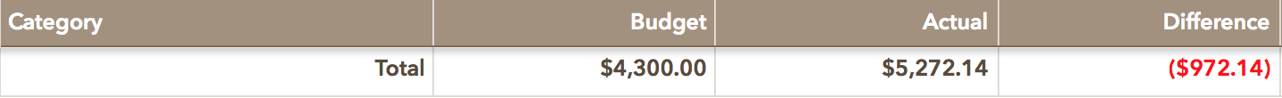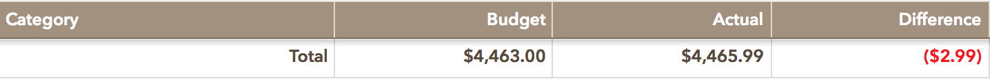 This is a little skewed because of how much we put towards the credit card this month. We put more towards the credit card than we actually pulled in, hence the difference in the overall monthly budget.